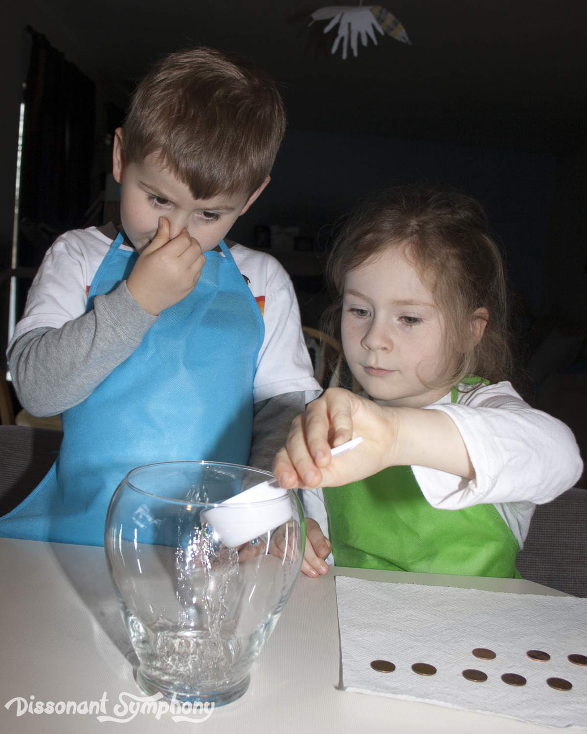 Do you have any old grungy pennies around the house? I’ll bet you do. Check under the couch cushions. Oh. Is it just my couch that collects money? Try the cup holders in the car. Still just me? We’ve been studying the first 12 elements on the periodic table, and this little experiment is an easy lesson with some pretty cool chemistry going on. Bonus, it’ll make your gross pennies look brand-spankin’ new. Like magic. Disclaimer: Vinegar is (apparently) the absolute worst smell on the planet. According to my kids, it may kill you with prolonged exposure. You may want to add “noseplug” to your list of materials.