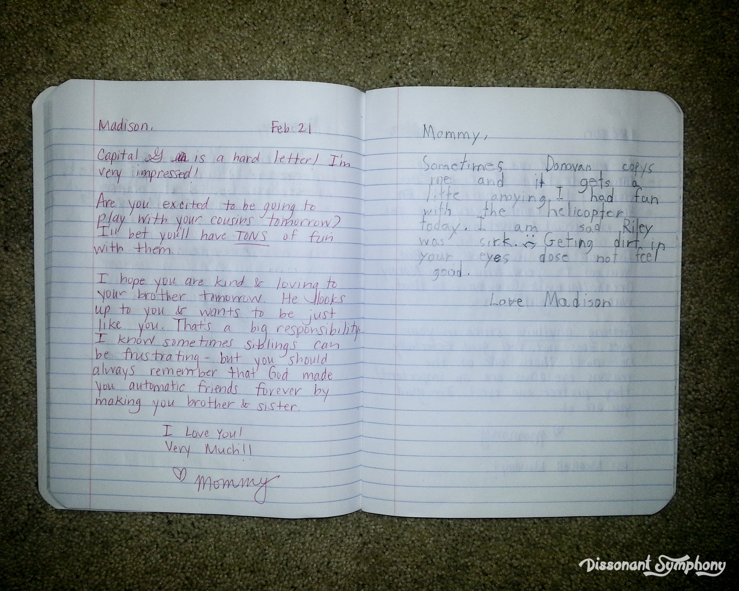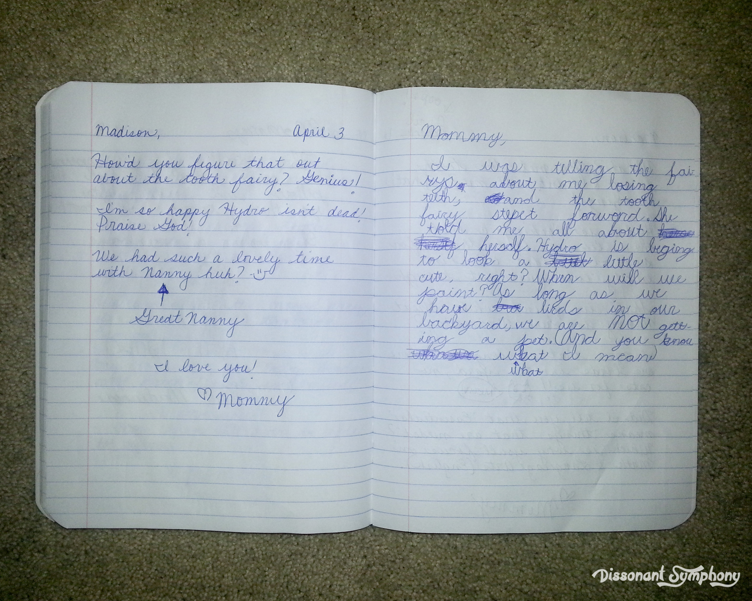 The kids leave their journals on the night stands in my bedroom and before my husband and I tuck in for the night, we respond to their daily entries. Our replies are often encouraging, helping brainstorm solutions and building excitement for upcoming events. Sometimes we’re just laughing with our kids on paper. The journals get deposited outside bedroom doors for the munchkins to find in the morning.