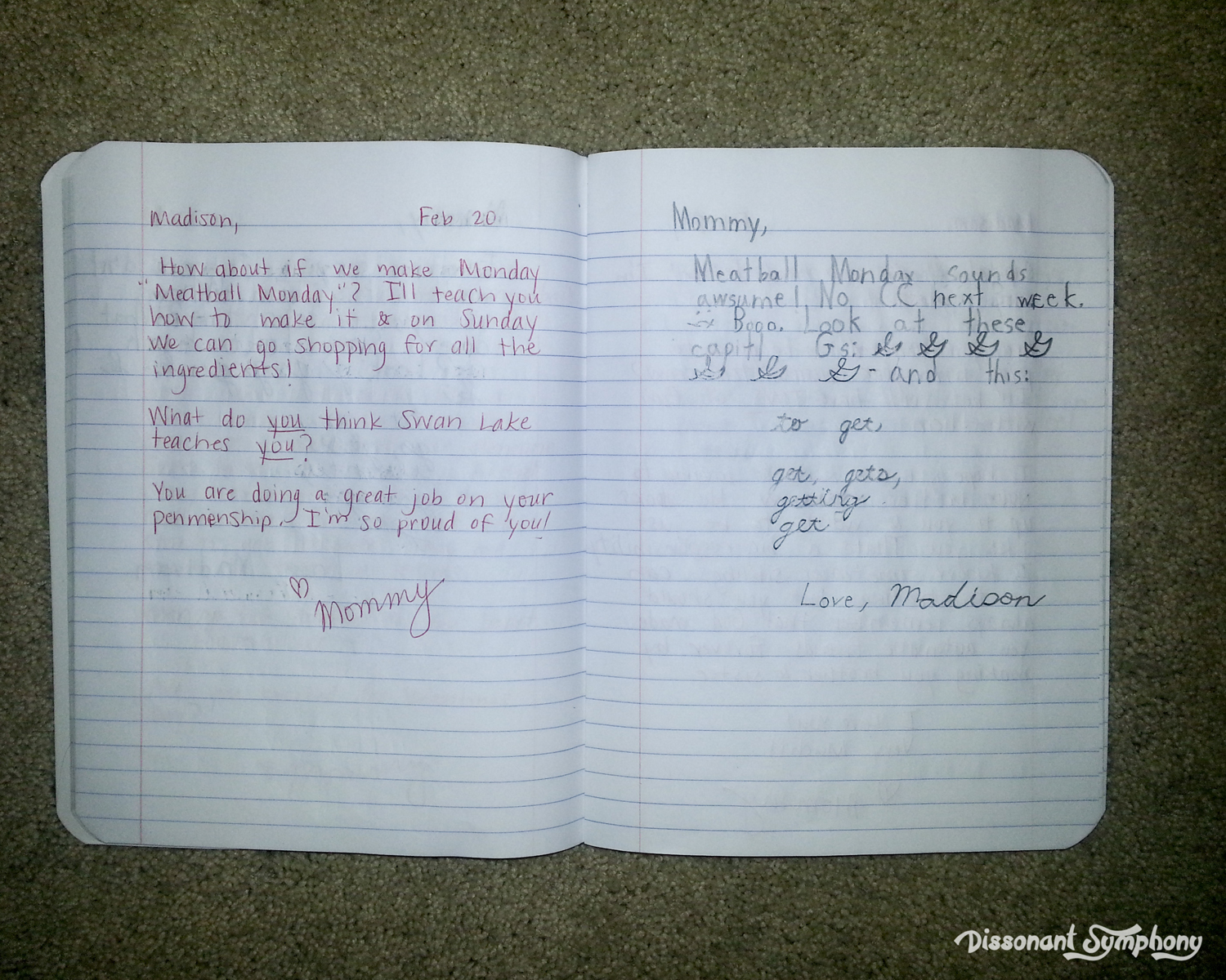 Every day (mostly) the kids spend a few minutes writing in their Youme Journal. My son writes back and forth with his Daddy, and my girl writes with me. A journal between you, and me. Youme. They talk about whatever they want. At eight years old, my daughter frequently writes about books she’s reading, interactions with her brother and challenges she’s facing.