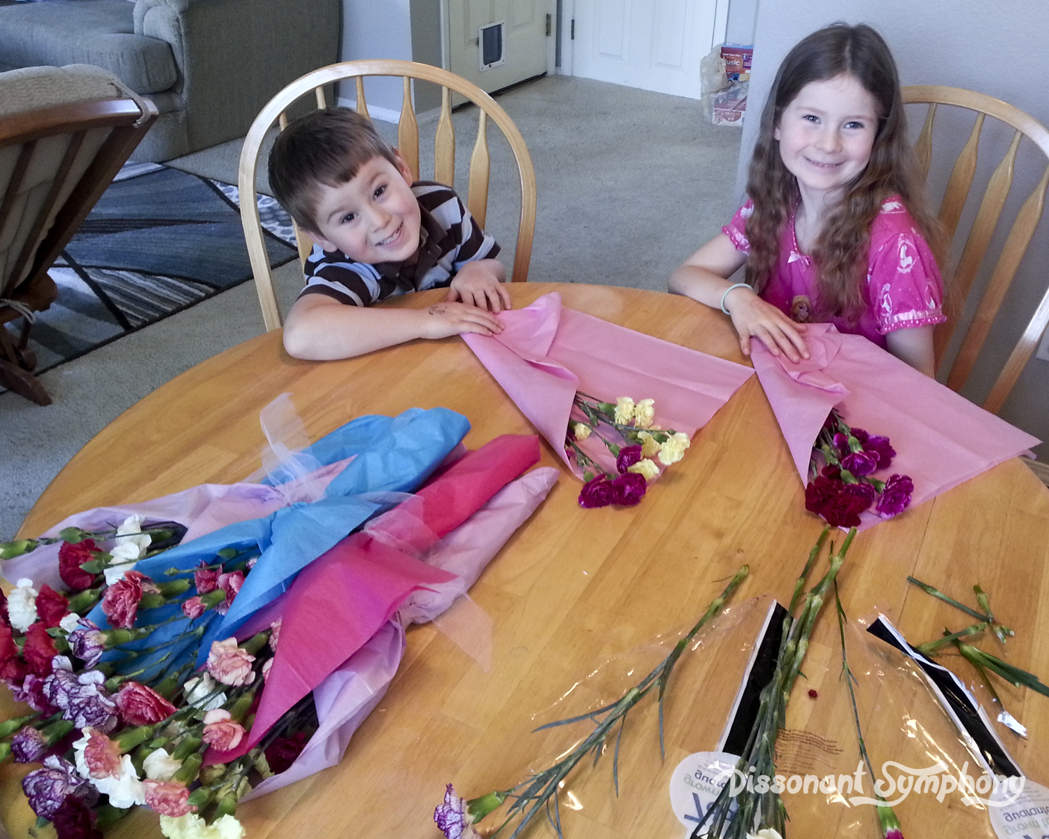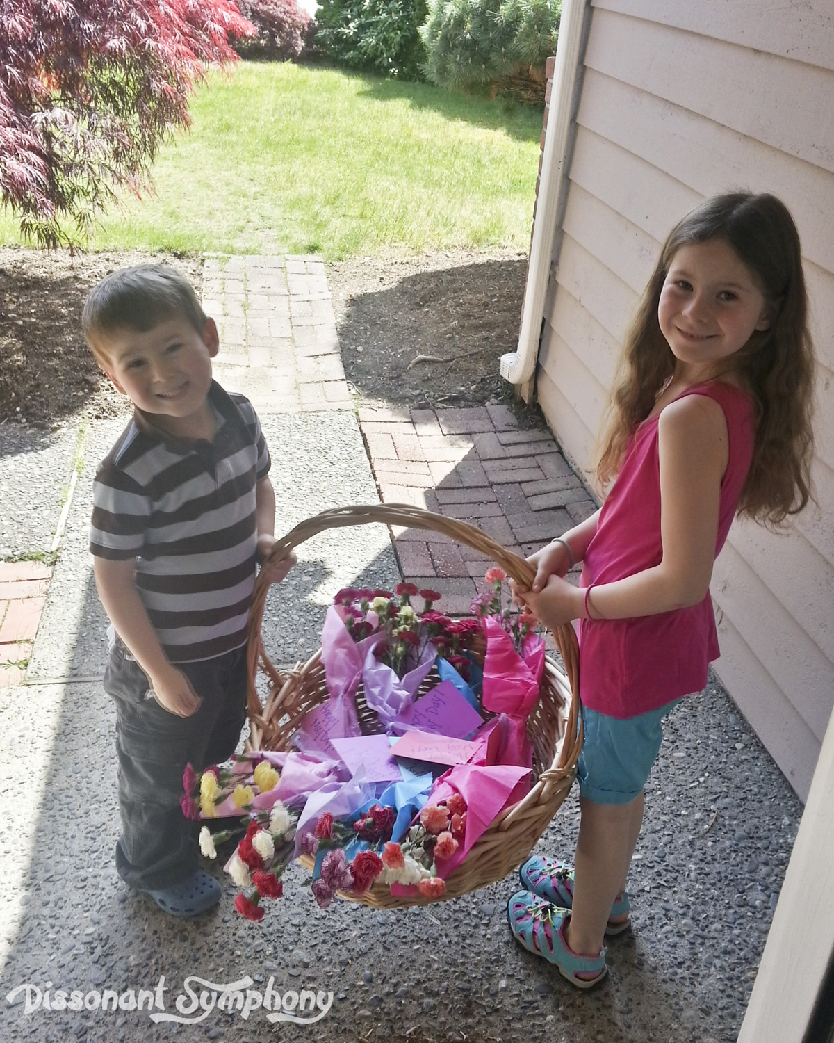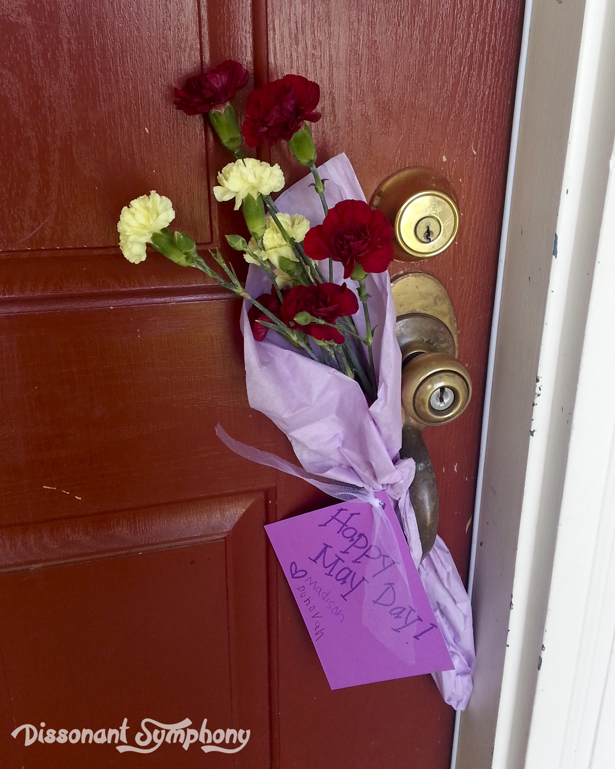 I really enjoy May Day because it lets my kids give to adults. Every other holiday in the year (it seems) consists of adults bringing joy to kids. May Day lets my children experience the joy of giving…without expectation of any reciprocation.They head out together and attempt to sneak to the door and run away before anyone catches them. It’s adorable to watch them scurry around the cul-de-sac.