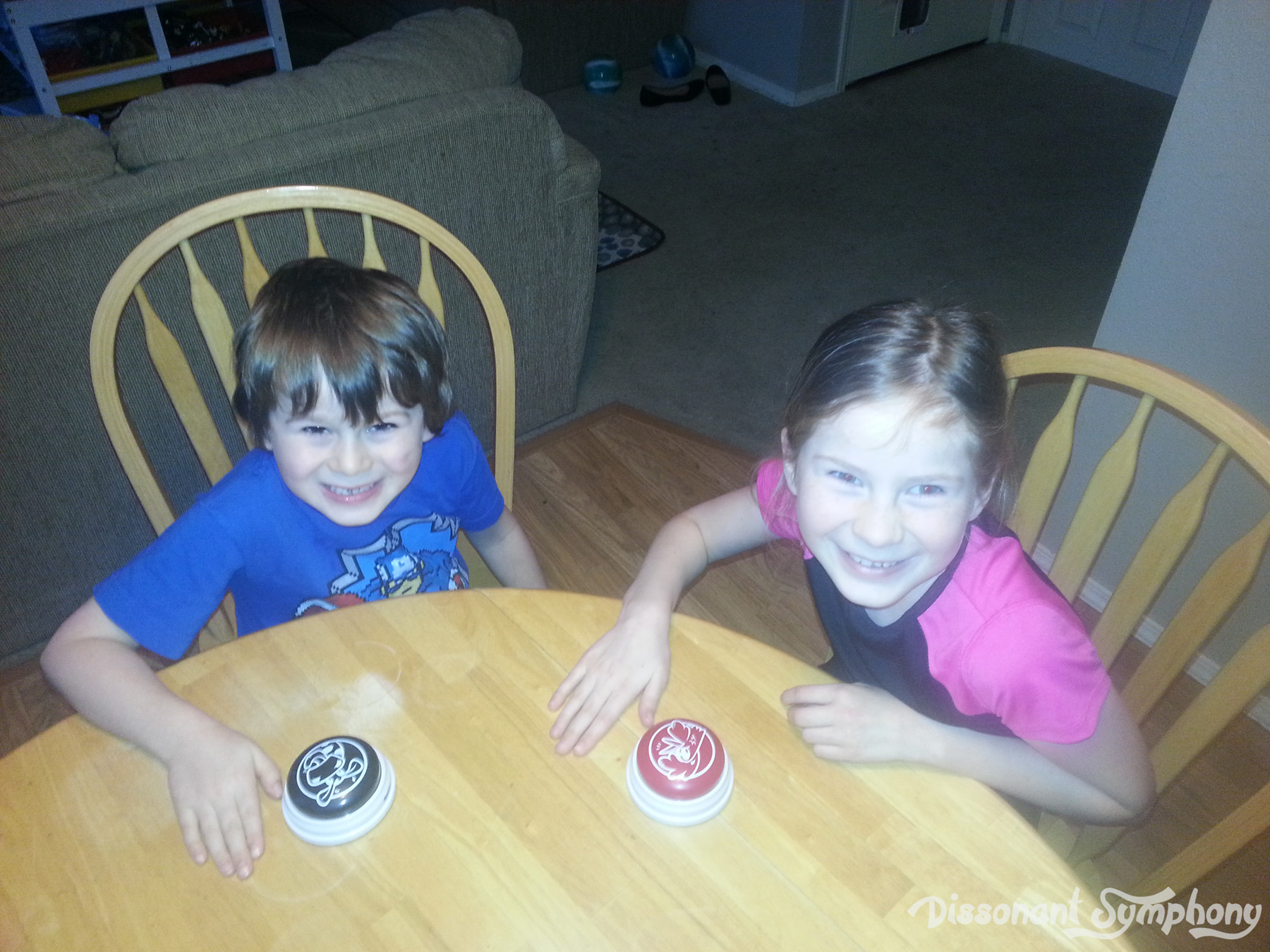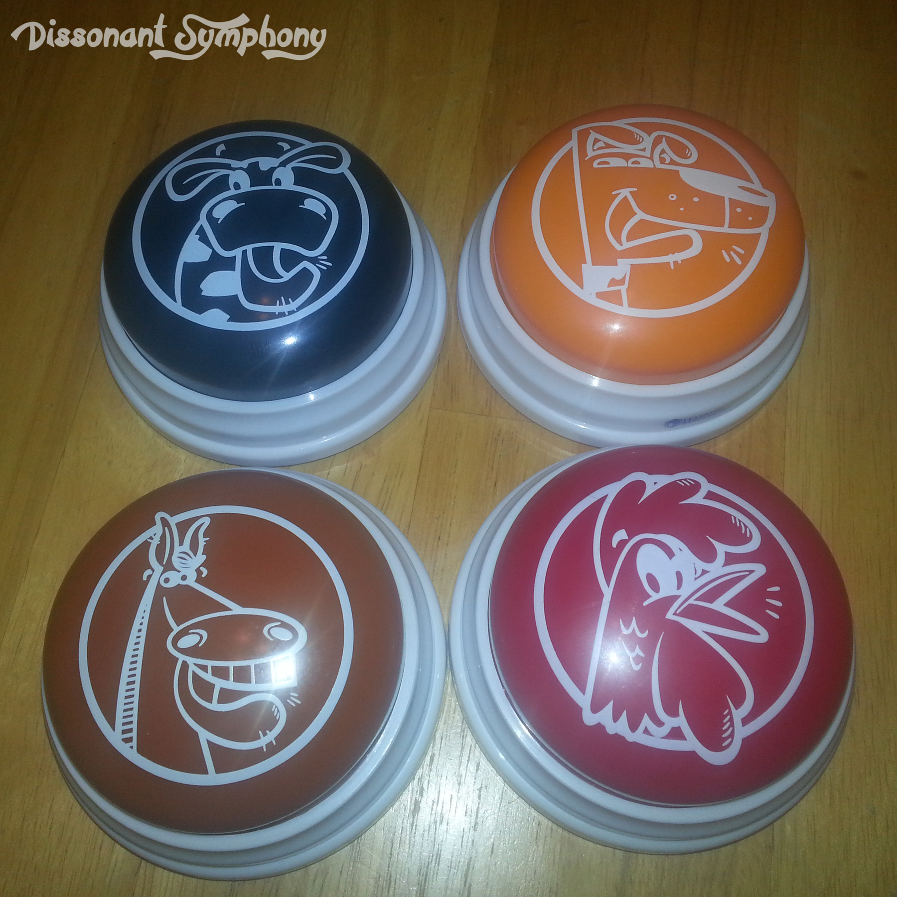 We have continued the tradition of drilling at the dinner table. Between bites of Bakerlady deliciousness, often you’ll find my family rattling off CC memory work, Awanas scriptures or math facts. This evening I had the (somewhat brilliant) epiphany of using some barnyard buzzers to bring a little more excitement to our work. Animal sounds blaring at a table where we’ve spent 8 years tirelessly training better-than-barnyard manners was too perfectly ironic to pass up.