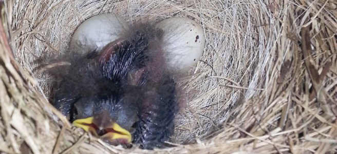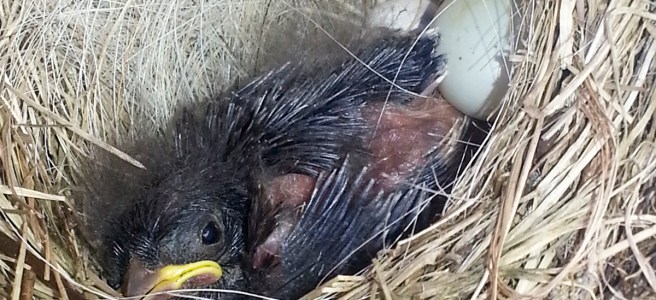 Happy Saturday! Hydro (and the nest) looked a little worse for wear this morning after a mildly blustery night last night. He almost seemed to be shivering, huddled at the back side of the nest. There were bits of nest coming loose everywhere and tufts of his feathers kind of flying around. Continue reading